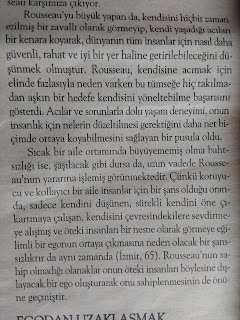 "Rousseau yazılarında, bilim ve sanatın egoların güçlenmesine ve dünyanın daha çekilmez bir yer haline gelmesine nasıl neden olabileceğini anlatmaya çabalamıştır. Tarih bilimsel gelişmeleri kendi kişisel hırslarının gerçekleşmesi için kullanmaya çalışan kişiler ve toplumların insanlara çektirdiği acılarla doludur. Ego'nun insanları ve toplumları ne hale getirdiğini ...."